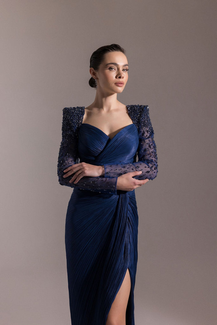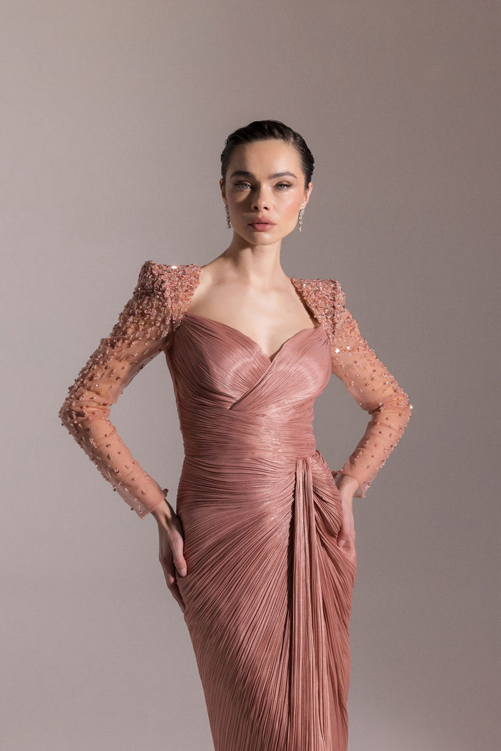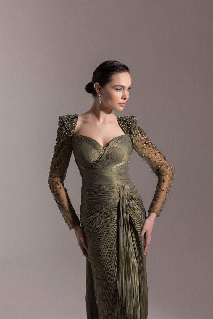 فستان سهرة فاخر يجمع بين الأناقة والحداثة، مصنوع من قماش عصري عالي الجودة مع تفاصيل ثنيات متقنة تضيف عمقاً وحركة ساحرة. التصميم الراقي يعكس أنوثة طبيعية ويمنحك إطلالة متميزة في كل مناسبة سهرة. قطعة استثنائية تجمع بين الراحة والجمال، مثالية لمن تبحث عن تعبير أنيق عن شخصيتها.