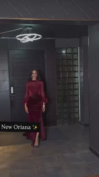 فستان فخم من المخمل مع دانتيل فرنسي بقصة ناعمة