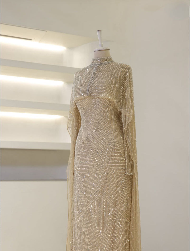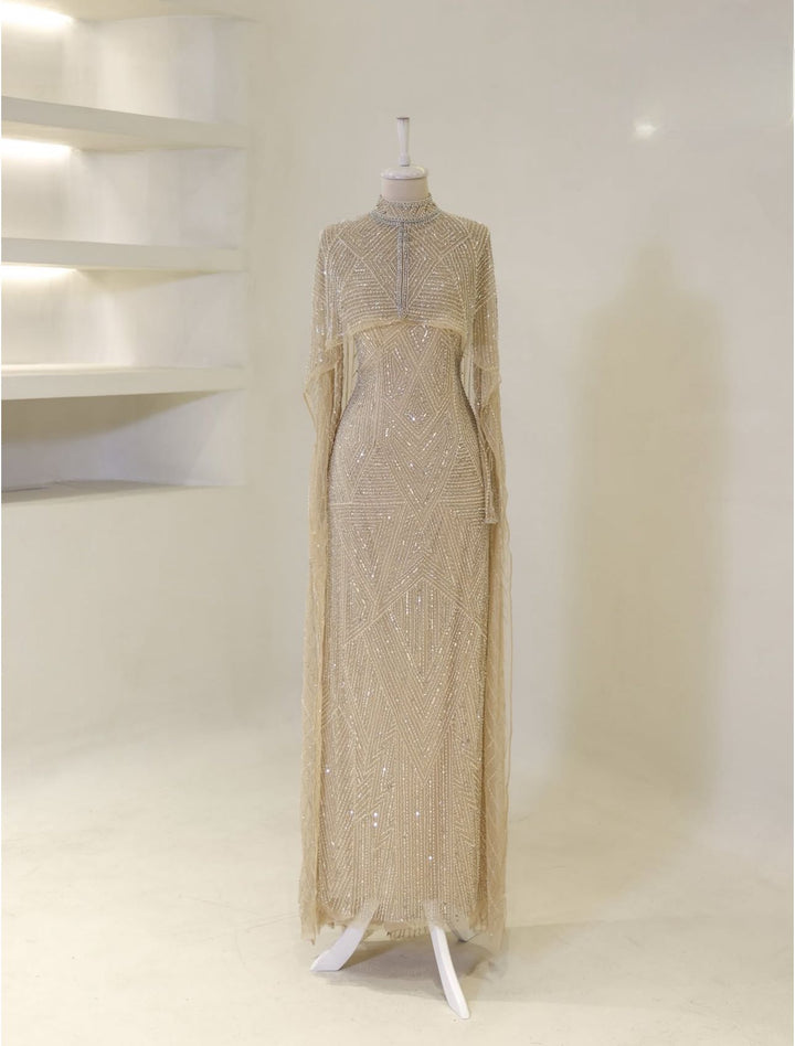 فستان سهرة مطرز بالكامل بالخرز