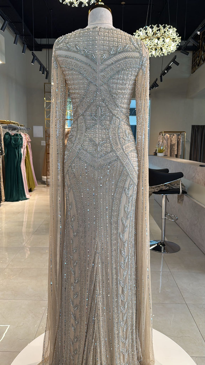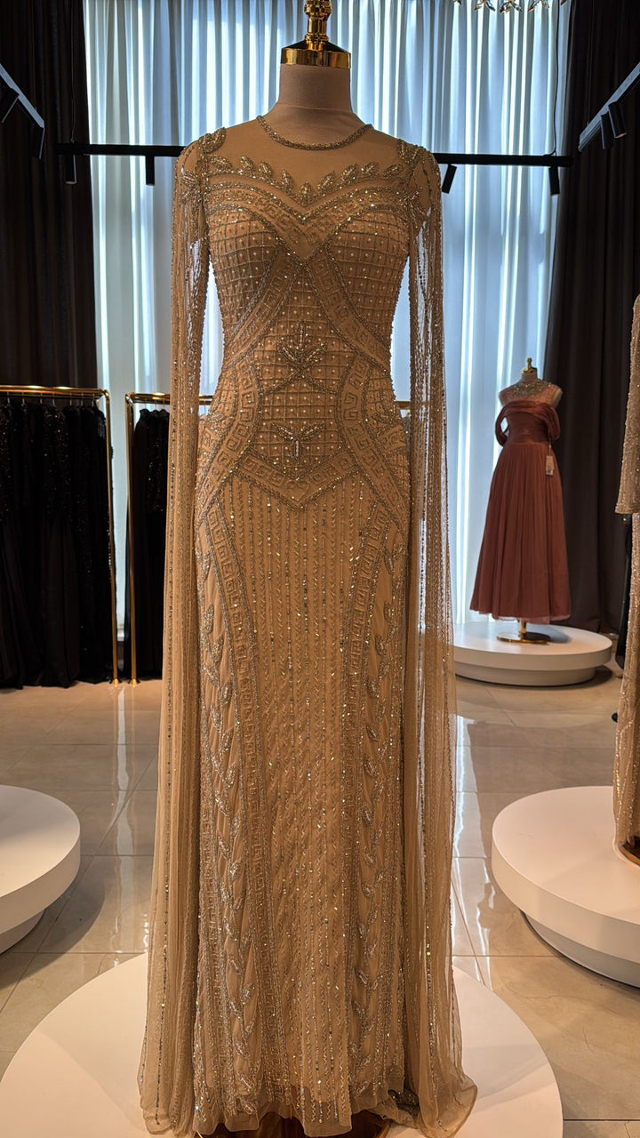 فستان سهرة مشغول بالكامل مناسب ايضا للمحجبات